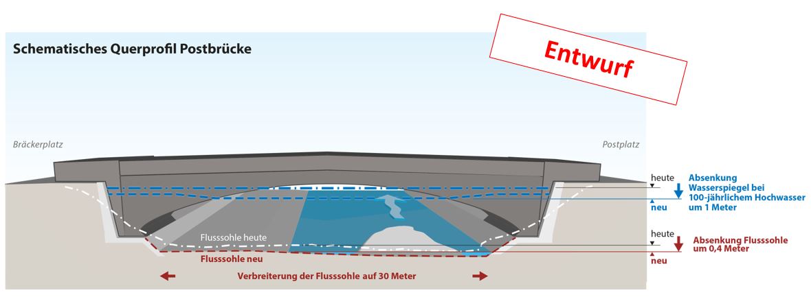 Erhöhung der Hochwassersicherheit im Bereich der denkmalgeschützten Postbrücke