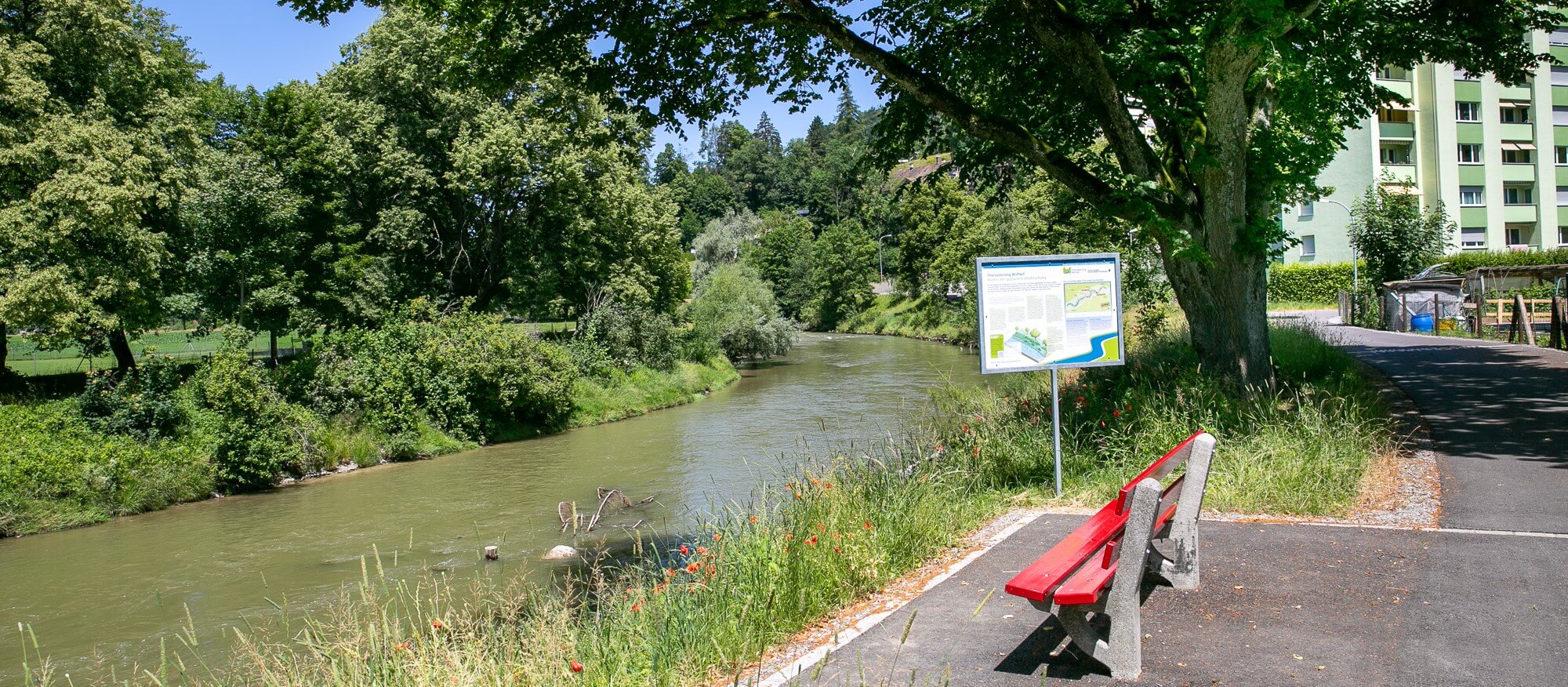 Erholungssuchende finden heute an der Thur in Wattwil kaum Zugänge zum Wasser oder Verweilmöglichkeiten. Mit der Sanierung werden verschiedene solche Möglichkeiten in Form von Sitzbänken, Sitzstufen oder rollstuhlgängigen Rampen geschaffen. Als Muster wird hier ein Aufenthaltsbereich mit einer Sitzbank umgesetzt. Wir laden Sie ein, sich eine Weile hier niederzulassen. Gerne können Sie die Zeit nutzen und uns Ihre Rückmeldung zu dieser Musterböschung senden.